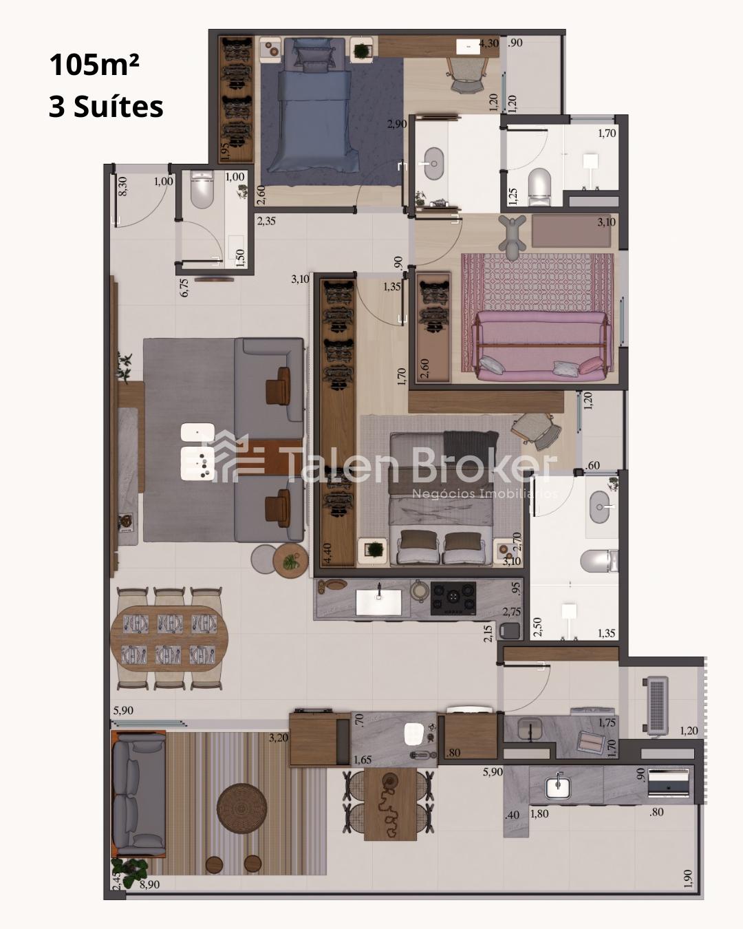 Apto 105,55m² (3 dormitórios) - a partir de: R$1.248.070,00