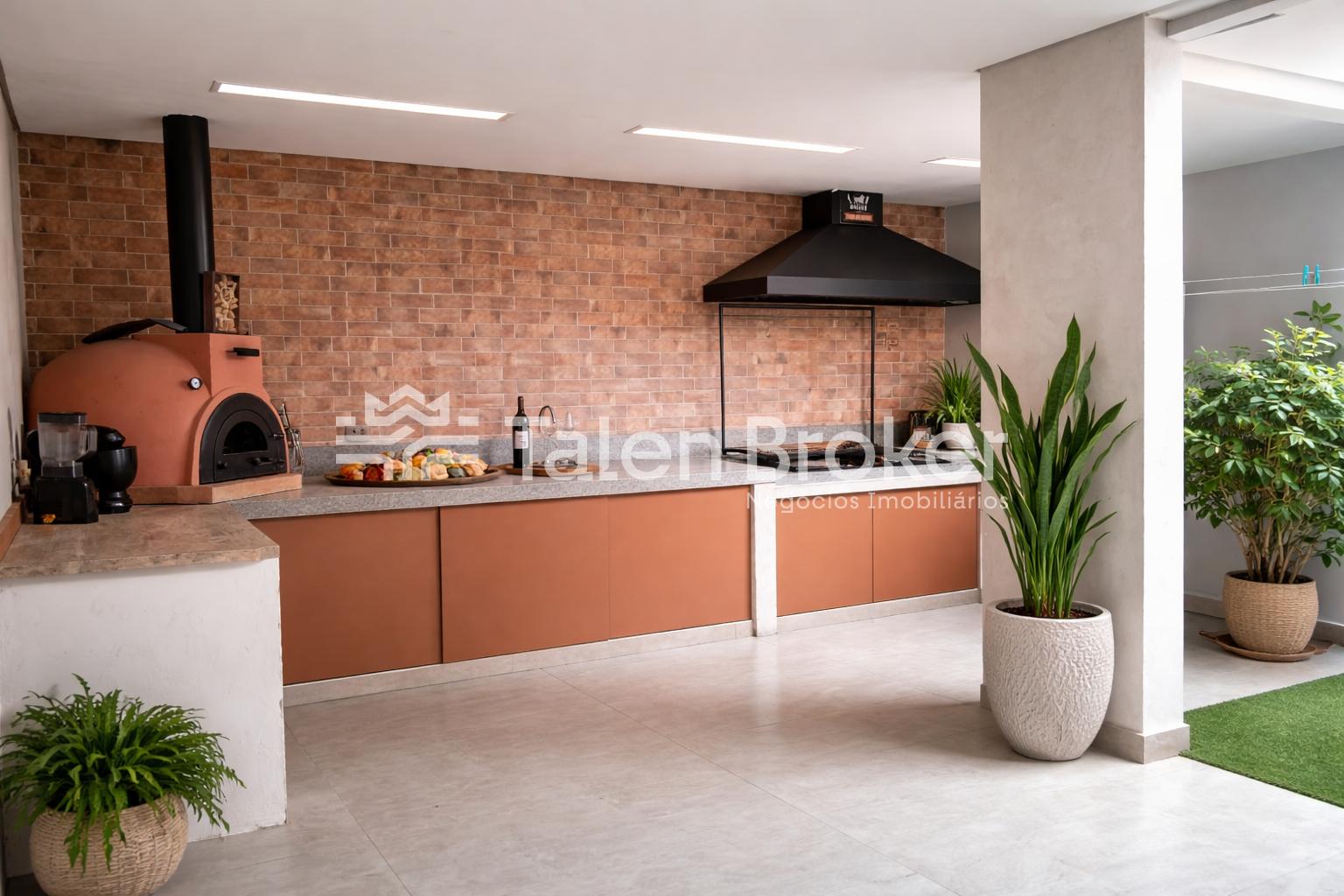 - 2 dormitórios sendo 1 suíte com aparelho de ar-condicionado; - Closet; - Sala de estar; - Cozinha; - Área de serviço; - 1 wc social - Área de serviço coberta; - Espaço Gourmet com churrasqueira, formo para pizza, ducha e jardim. - Pé direito 2,70m.
